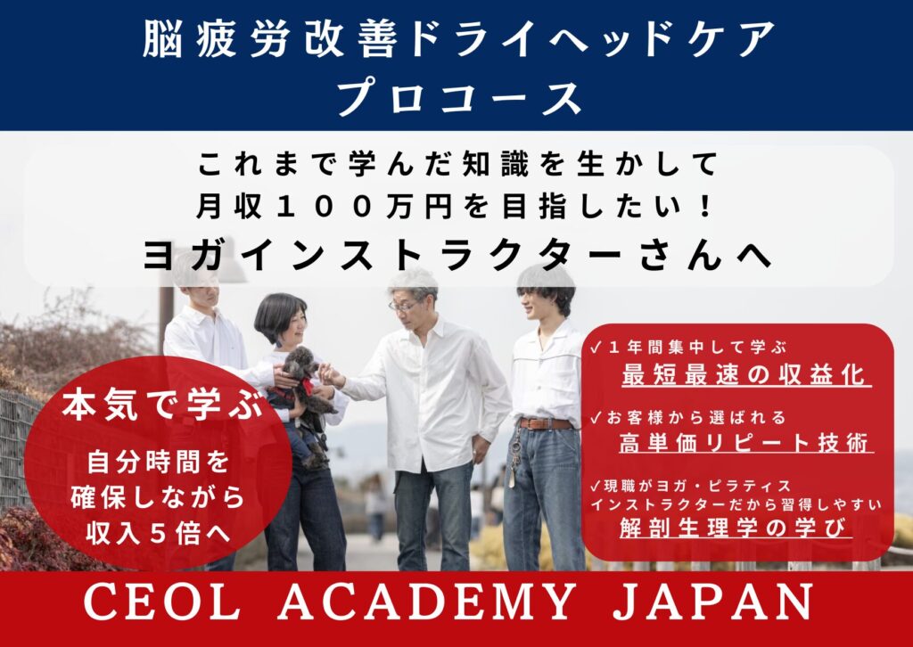 CEOL Academy JAPANってこんなとこ 【学んだだけでは終わらないSchool】 CEOL Academy JAPAN はセラピストスクール! なのですが 学んで手技を覚えたら用がなくなる場所ではありません。 体を楽にする方法=脳疲労改善ドライヘッドケアの手技🖐️ なぜ学ぶのか? なんのために学ぶのか? 学んだ先にあるアナタの未来を叶える思考 セラピスト知識を学ぶことで開ける未来 豊かな人生 幸せの受け取り方 幸せとは? 誰かを幸せにする方法、など、、、 数えきれないものを学ぶ場所 それがCEOL Academy JAPAN という場所です。 たくさん受け取りたい! と、思う方に学びは訪れます。 今、セラピストという仕事に魅力を感じているあなた あなたは学んだら何に向かって行こうとしているのですか? お客様(生徒さん)の幸せ?健康?美? それを見届けるあなた自身の幸せ? その知識と技術を使って、家族全員を幸せにしたい? 仲良しの友達にはいつまでも元気でいてもらいたい? 健康でいてくれないと!あなた自身が困るんですよね。 その大切な人々が、望む姿で生きることが、 充実感へとつながるから… あなたはその手助けができるナンバーワン🥇 オンリーワン☝️でいたいんですよね? そのために手にしたい技術がここにあります! 脳疲労改善ドライヘッドケアは 解剖生理学に沿った考えの元作られています。 先日も考案者である代表Kellyが実際のご検体の解剖実習(チェンマイ解剖実習)に2回目参加をして、 この手技がどれだけ正確に、どれだけの効果を与える手技であるかを再確認してきてくれました。 その学びのシェアを聞きますと、 (受講生の方はチャットに共有されています。もう,絶対!ご覧いただきたいです!ワクワクしますよ!) 仕事がしたくなる! 楽しい! となってしまいます。 CEOLの学びはいつもワクワクです。 毎回楽しいから、きっと次も楽しい! と期待大ですが、また次も楽しい! お値段以上の学びの深さ、是非知ってください。 同じ学ぶなら、興味がずっとある場所! 学びを深めてくれる場所! 知識レベルを上げてくれる場所! しいては、人生レベルも上がっていく場所。 そんな場所が CEOL AcademyJAP